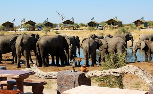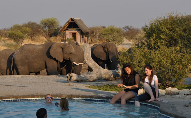 Elephant Sands is a bush lodge & campsite in the north-eastern part of Botswana. Come and enjoy viewing the elephants at our natural waterhole right in front of the lodge. Watch these impressive creatures whilst they drink at only a couple of meters away from you, a unique experience!