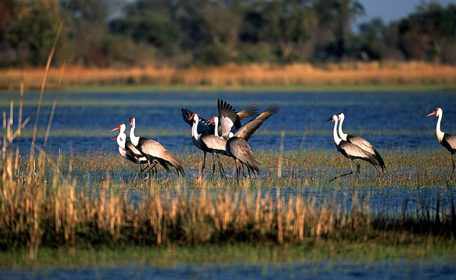 Discover the Moremi Game Reserve in the Okavango Delta of northern Botswana. This area becomes a lush animal habitat during seasonal floods, and dugout canoes are used to navigate past birdlife, hippos, and crocodiles on waterways like the Xakanaxa Lagoon. On land, wildlife includes lions, leopards, and rhinos. Safari camps are common, with several dotted around large Chief's Island and the forested Mopane Tongue Peninsula.